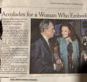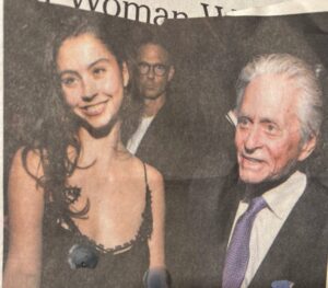 Left, MicRight: Michael Blumberg (former Mayor of New York), a not particularly observant Jewish self-made billionaire, and Diane von Furstenberg, fashion designer – a Jewish lady, despite her goyish name, whose mother barely survived Auschwitz. Left: Michael Douglas (actor, son of Kirk, 1916-2020, a Jew) and his daughter Carys at the same party. Neither is Jewish; they are, rather, Jew-adjacent. Celebrities, these kinds of people drive the Nazis and Neo-Nazis nuts.